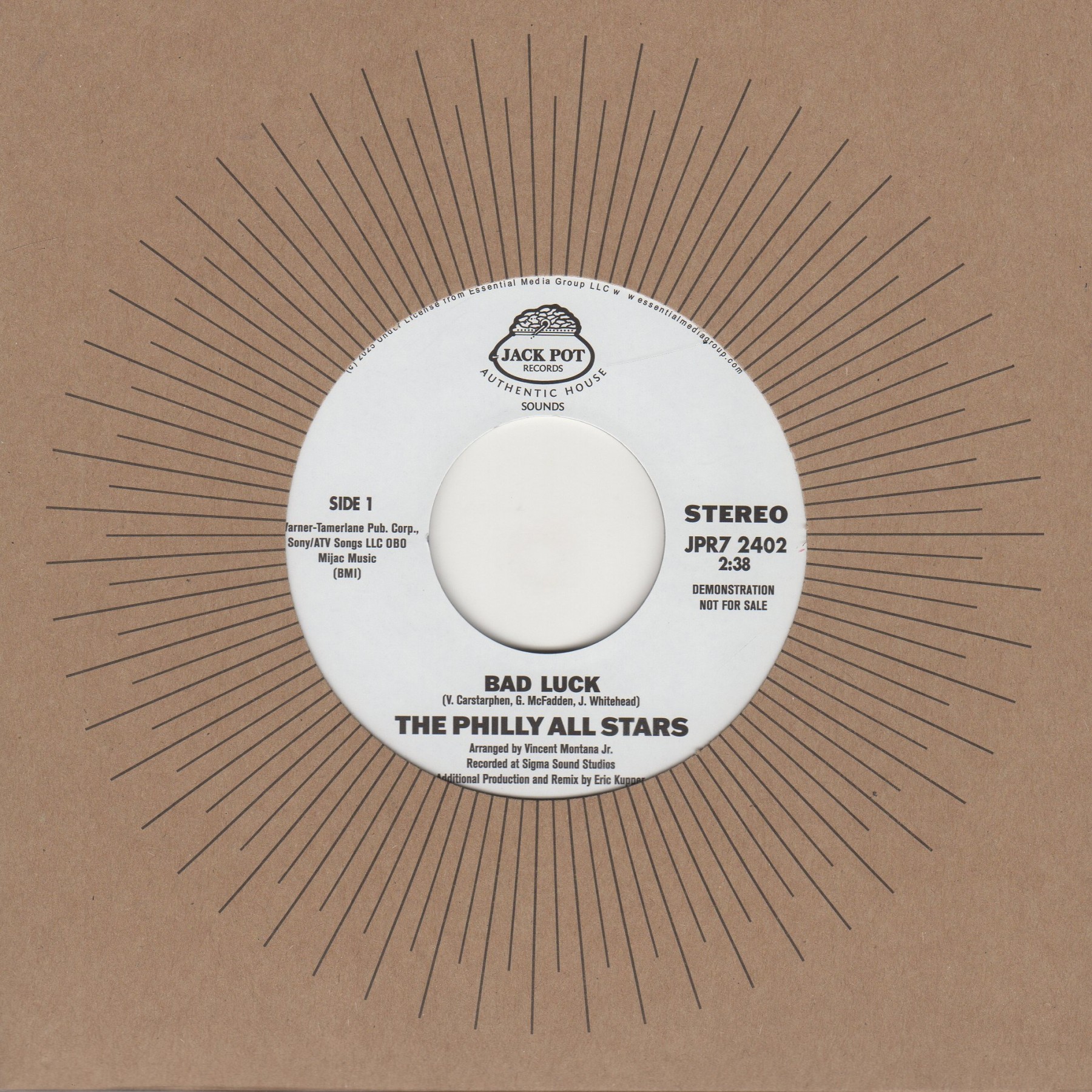 Limited To 100 Demo Copies Fully Licensed, (I Got Last Few From Lee), Basically This Is An Unfinished Demo Featuring DAVID SIMMONS On Vocal Then Remixed By Legendary Producer ERIC KUPPER. HISTORY: In 1982, the elite, core musicians (MFSB / The Salsoul Orchestra) behind the soulful Philly Sound - Earl Young (drums), Ron Baker (bass), Norman Harris (guitar), Lenny Pakula (organ), Larry Washington (percussion), Vince Montana, Jr. (vibes) - and powerhouse vocalists David Simmons, Joe Freeman, Ron Tyson and Bobby Love convened at Philadelphia’s historic Virtue & Sigma Sound Studios to record some of the genre’s biggest hits. This small, but amazing set of lush recordings, which were recorded at Sigma sound studio and mixed at Alpha Studios - ensuring that every note and nuance was captured with the highest fidelity, recently caught the attention of the famed producer and remixer Eric Kupper. Kupper got his start working as a keyboardist and guitarist for such producer/remixers as David Morales, Frankie Knuckles, Arthur Baker, Peter Rauhofer, and Richie Jones, just to name a few. Since 1986, he has played on, remixed, and/or produced over 1400 records for artists spanning all contemporary musical genres. Presented here is “Bad Luck” which features Simmons’ incomparable lead vocals and a brilliant remix by Kupper. This release is not just a tribute to the past, but a vibrant continuation of the legacy these legendary musicians helped create.