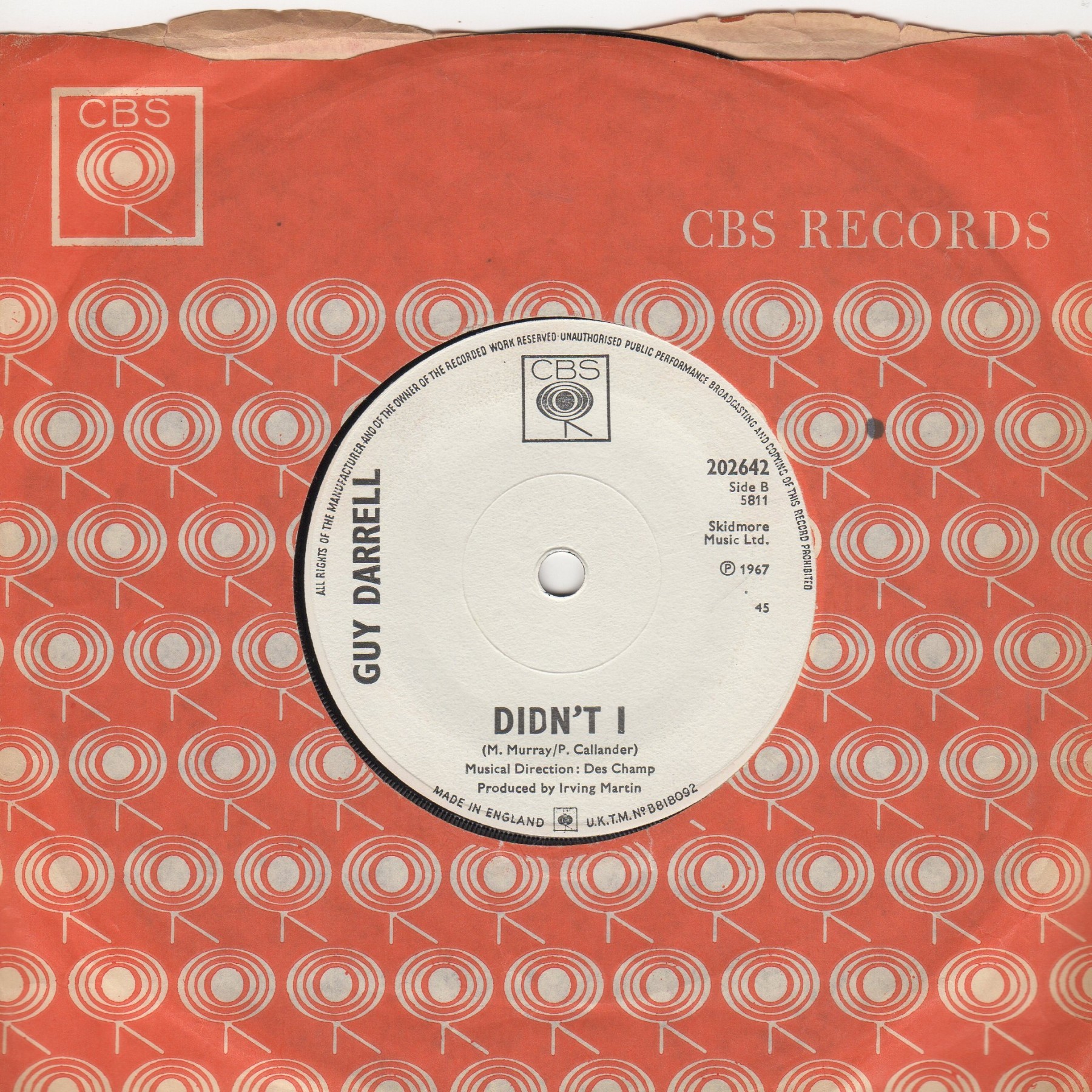 G+ … will have audible marks and/or wear vinyl/label...LISTEN to sound file