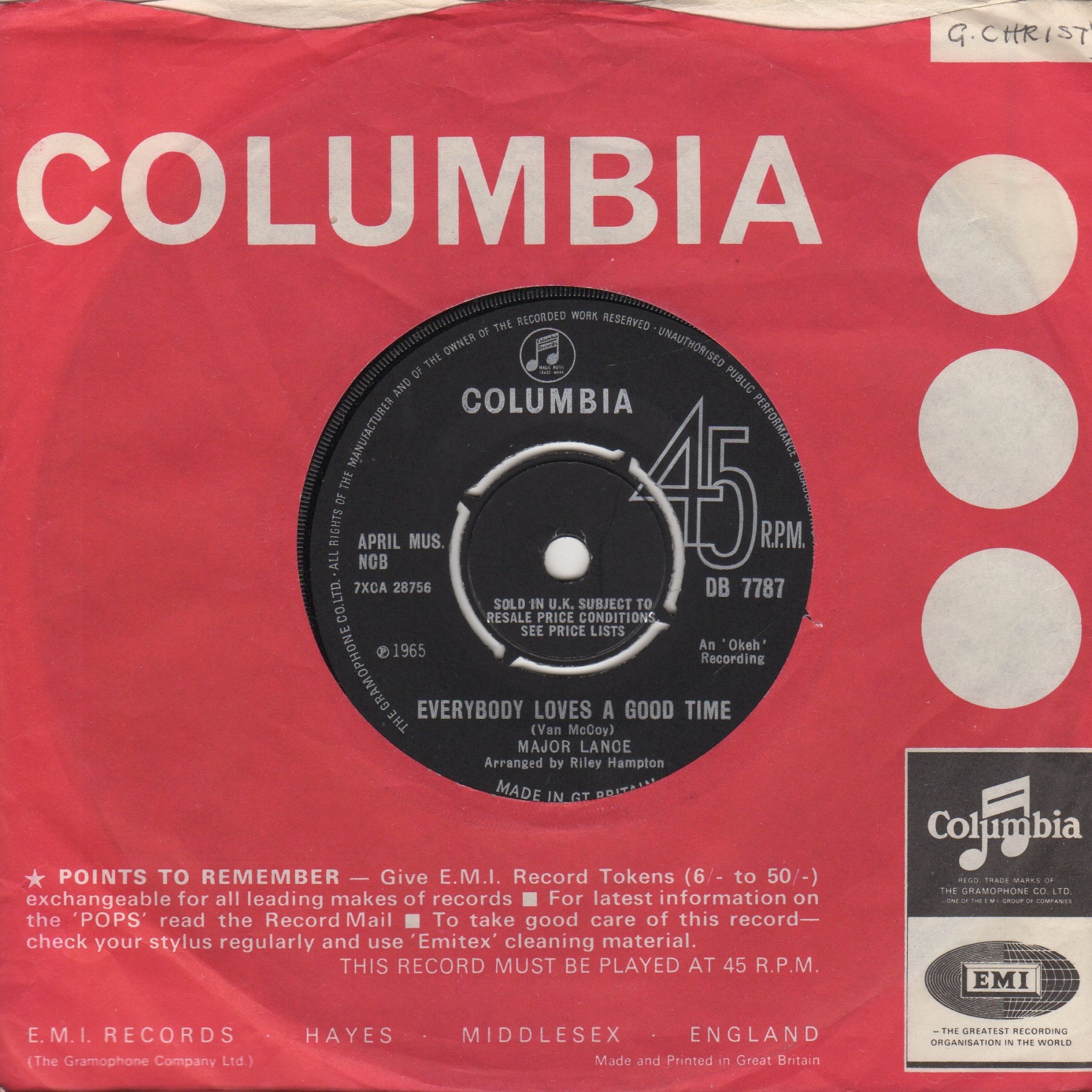 Label Columbia DB 7787