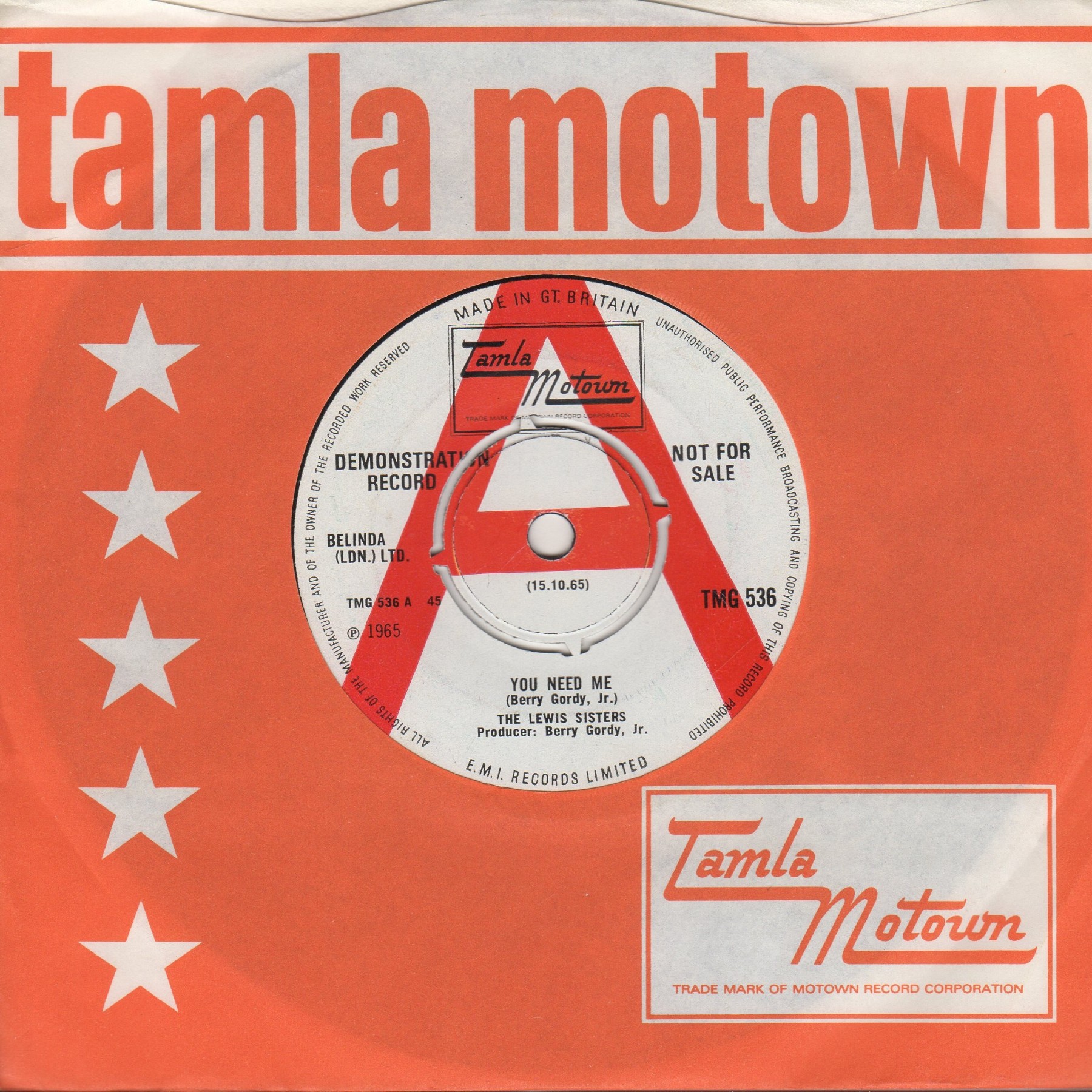 Label Tamla Motown DEMO TMG 536